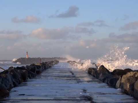 In der Nacht blies der Wind aus Nordwest mit 8-9. Heute morgen war dann noch sehr schönes Licht – also Ölzeug an und ab auf die Mole!